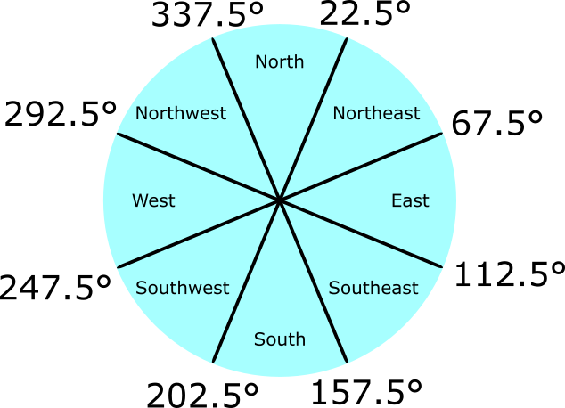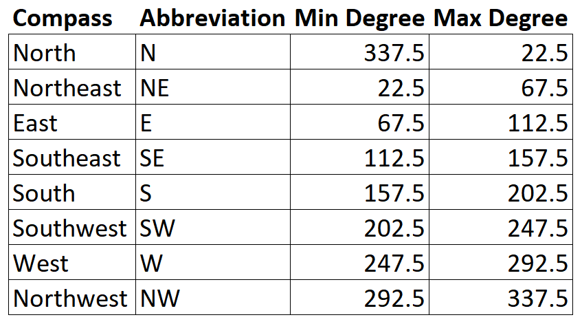 We can expand that out to the entire compass to determine our ranges for each direction.