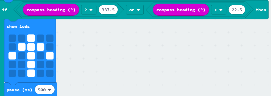 Finally, I like to add a message that will display in case there’s an error. If the sensor fails or is unable to determine the direction, the micro:bit should not display an arrow.